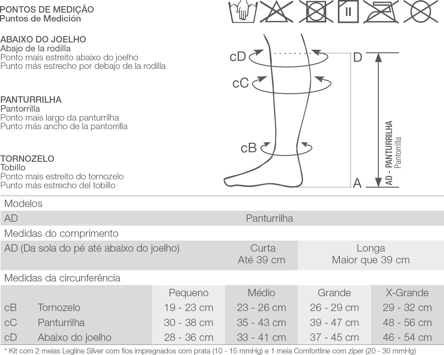 O Kit para tratamento de úlcera é um sistema de sobreposição de 2 meias e é composto de 3 meias: 2 meias interior Legline Silver compressão (10 - 15 mmHg) para troca diária, fabricadas com fios impregnados de prata deslizantes, e 1 meia exterior Comfortline com Zíper (20 - 30 mmHg).