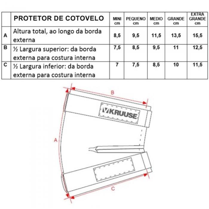 O protetor de cotovelo é fixado acima e abaixo da articulação com o auxílio de duas bandas de velcro.